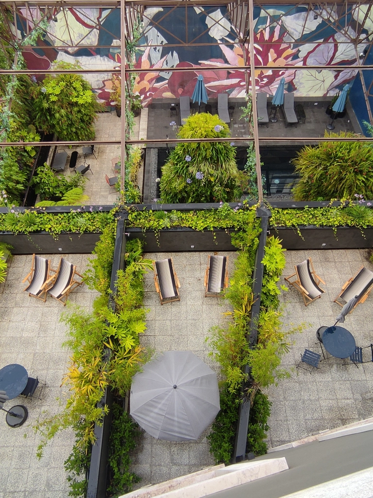 La colazione viene servita nei tavoli del ristorante dell’hotel, Animal. Una giungla immersa nel verde, con un’ampia vetrata che da sul cortile interno dove si trovano i tavoli all’aperto. Un’oasi verde, come loro la definiscono. Colazione stupenda con ampia scelta tra dolce e salato, pancake con fragole, o vegani alla banana, preparati sul momento, ma anche cornetti, pane, burro salato, uova strapazzate, frullati di frutta fresca. Una delle migliori colazioni in hotel di questo 2022. Rimpiango l’essermi lasciata sfuggire l’occasione di prenotare una cena qui: il menù sembra delizioso. La prossima volta, dai.
