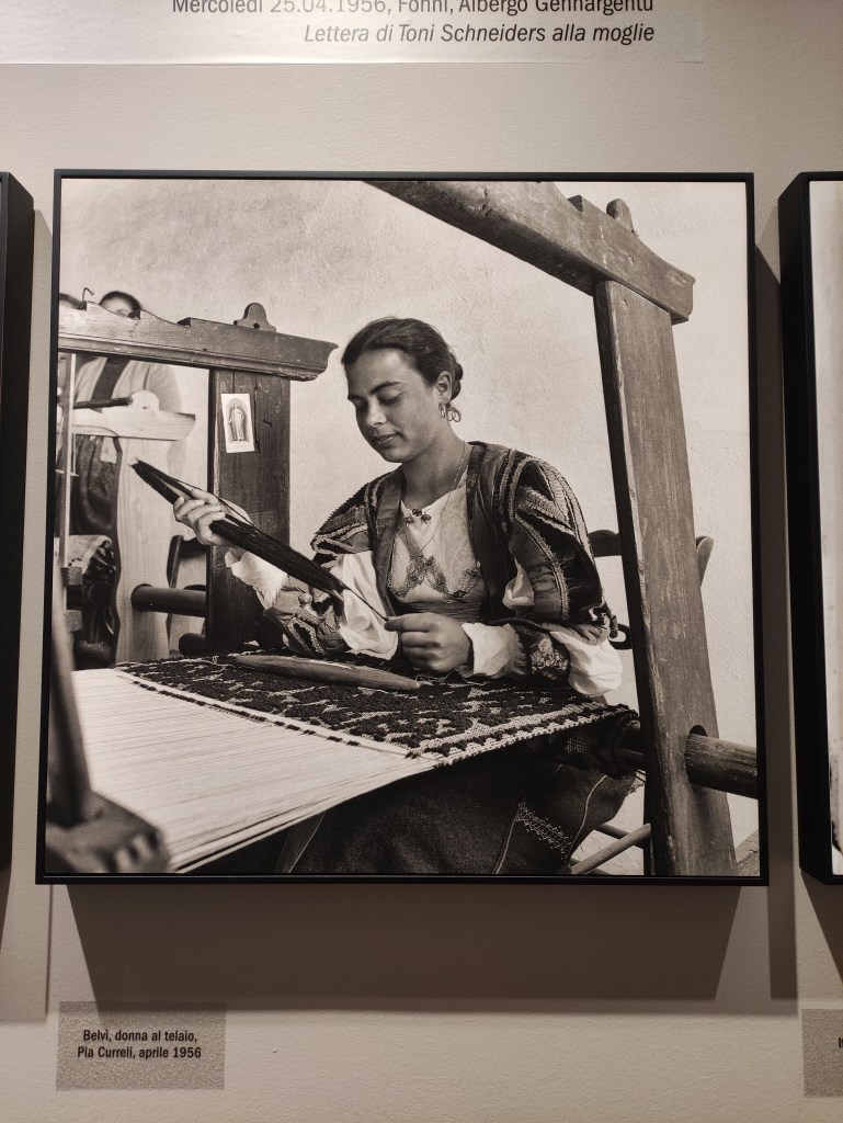 Quando ho visitato Spazio Ilisso in aprile, al piano superiore era esposta la mostra fotografica di Toni Schneider, con più di cento scatti realizzati dal fotografo durante un suo denso viaggio in Sardegna nel 1956, l’anno in cui è nata mia madre. Un reportage dell’isola realizzato in un periodo di quaranta giorni durante i riti di Pasqua. Una Sardegna del passato, con i costumi e i riti tradizionali, il villaggio di pescatori di Cabras, la sfilata di Sant’Efisio a Cagliari.