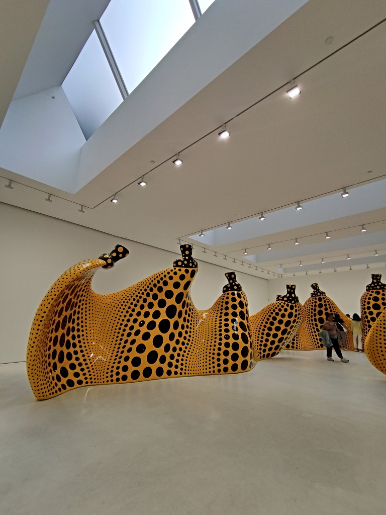 La prima volta che ho sentito parlare di Yayoi Kusama è stata anni fa, quando ho cercato notizie sulla celebre zucca gialla a pois neri dell’isola di Naoshima. Ora sull’isola giapponese c’è un’altra zucca perché l’originale – installata nel 1994 – è stata danneggiata da un tifone e trascinata tra le onde dell’oceano. Non ho visto di persona né l’originale né la replica della scultura che mi ha fatto conoscere questa artista, ma quando ho letto che ci sarebbe stata una mostra di Yayoi Kusama a New York proprio quando avrei visitato la città, ho deciso di andarci per vedere finalmente da vicino qualcuna delle sue opere.