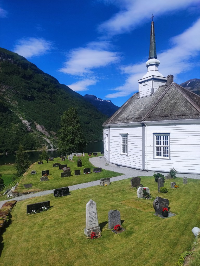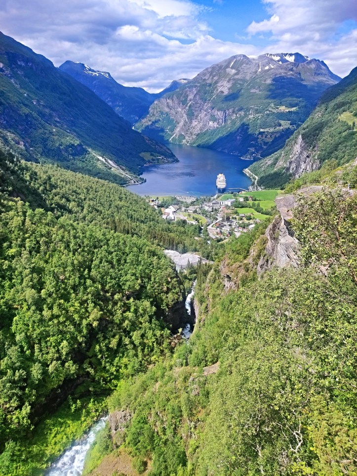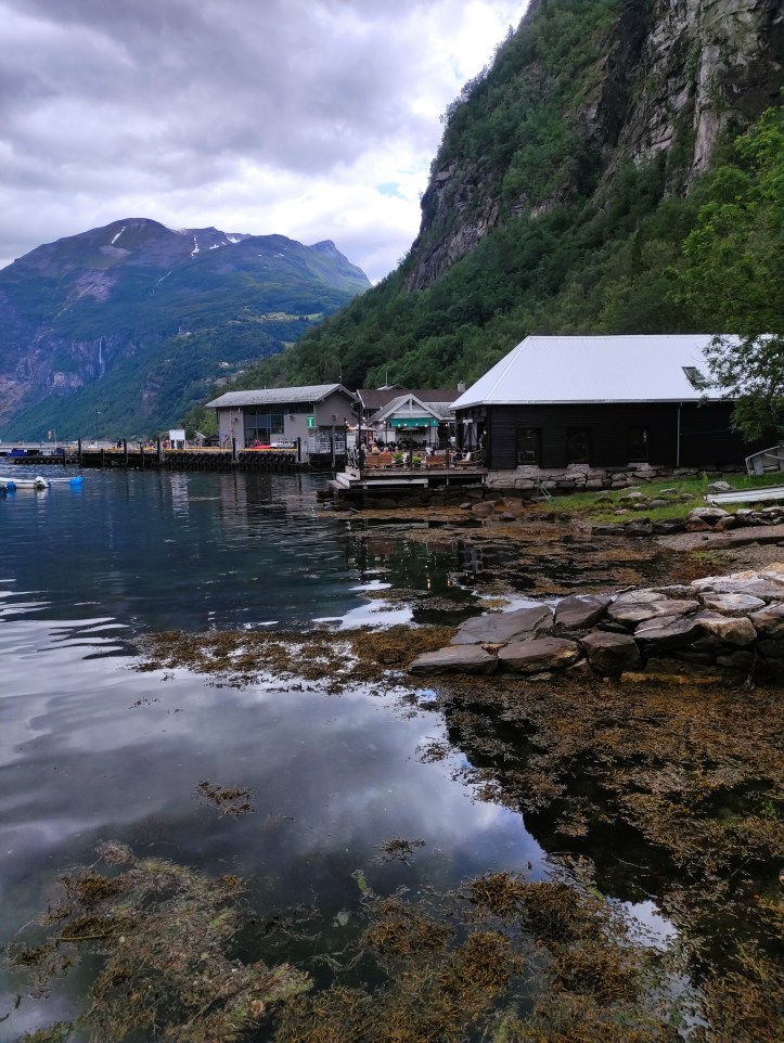 Geiranger è un piccolo villaggio situato alla fine del fiordo omonimo. Il centro del paese è tranquillo, con case tradizionali, piccoli ristoranti e cioccolaterie accoglienti, immancabili negozi di souvenir, qualche hotel e un campeggio con una vista da sogno sul fiordo. Da qui, il fiordo si estende in tutte le direzioni, incorniciato da pareti rocciose a strapiombo e da vette spruzzate di neve anche a giugno.