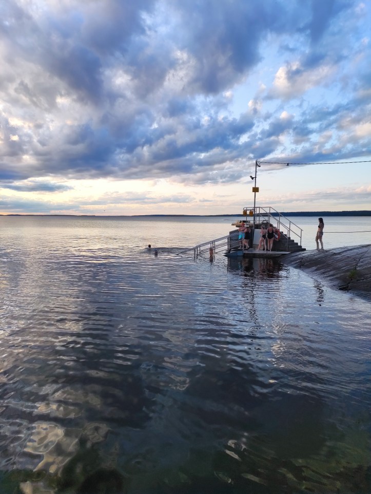 • Giorno 1: con il mio compagno siamo arrivati a Helsinki con la pioggia e il vento e 15 gradi a fine giugno. Abbiamo lasciato i bagagli al nostro hotel, lo Scandic Grand Central, affianco alla Stazione Centrale, e con una passeggiata di 40 minuti (avevamo voglia di camminare dopo due voli) siamo andati alla sauna Loyly. Una struttura di design, realizzata in legno e alimentata attraverso fonti di energie rinnovabili, con due saune al coperto (di cui una “a fumo”) e due all’esterno, oltre a un ristorante su una terrazza panoramica che si affaccia sul mar Baltico. Non siamo stati così coraggiosi da fare il bagno nel Baltico tra una sauna e l’altra perché mentre eravamo lì ha pure grandinato, ma sarebbe stato bello. Il locale secondo noi era troppo rumoroso per cenare lì, per cui ci siamo spostati in un posto più tranquillo lì vicino: da Birgitta, un ristorante e caffetteria sul mare. Mentre cenavamo, sul lungomare vedevamo passare tante ragazze con le coroncine di fiori sui capelli, visto che era la festa di Midsommar.