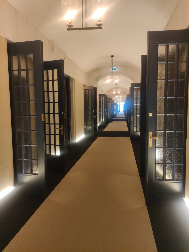 Passeggiando negli spazi comuni si percepisce ancora qualcosa della “vecchia vita” dell’edificio: nei corridoi, nelle scale, nelle proporzioni delle stanze, in certi dettagli architettonici che non sembrano messi lì per scenografia, ma sono semplicemente rimasti a raccontare ciò che c’era prima.